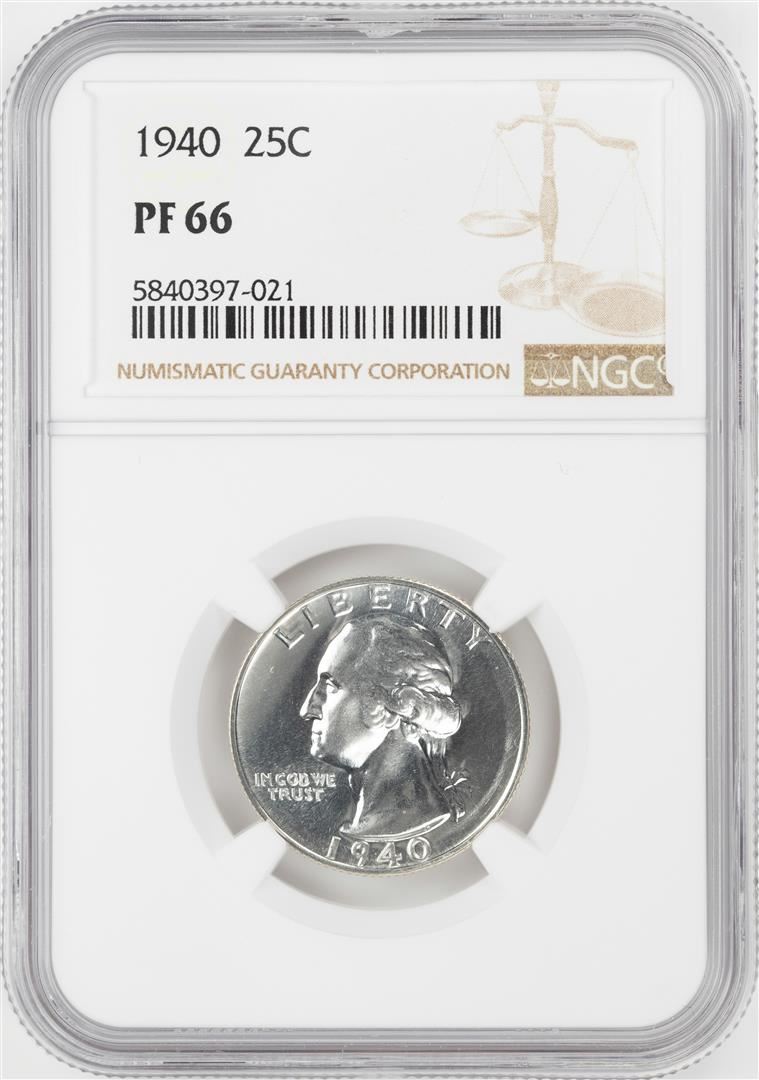 One 1940 Proof Washington Quarter Coin NGC PF66. NGC Certified.
