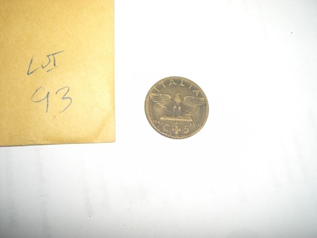 1940 *RARE-HARD TO FIND* ITALY 5 CENT COIN *NICE EARLY ITALIAN COIN*!! COIN CAME OUT OF SAFE!! ***Coin, Currency & All Items Listed in this auction - Grades, Conditions and Values are not Safe Deposit Coins LLC Responsibilty. Grades, Condition and Values are determined by Consigner(s) & Buyers ONLY