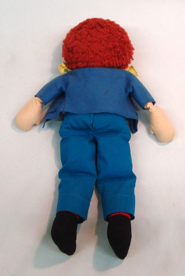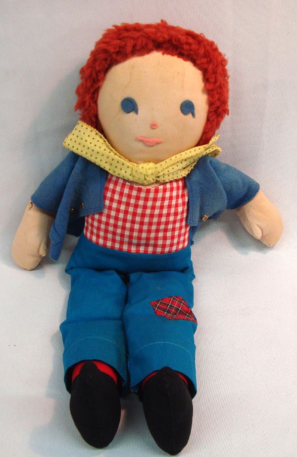 1940 Raggedy Andy Doll. Yarn hair, cloth body. Measurers approx. 16''H x 7''W.