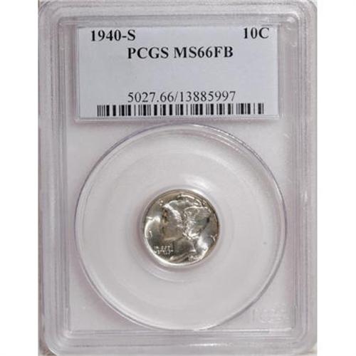 <B>1940-S 10C MS66 Full Bands PCGS.</B></I> PCGS Population (414/107). NGC Census: (224/83). Mintage: 21,560,000. Numismedia Wsl. Price for NGC/PCGS coin in MS66: $125. (#5027)<BR><BR><B>Coin Engraver:</B> Adolph A. Weinman<BR><BR><b>Shipping:</b> Coins & Currency (<a target="_blank" href="http://www.heritageauctions.com/common/shipping.php">view shipping information</a>)