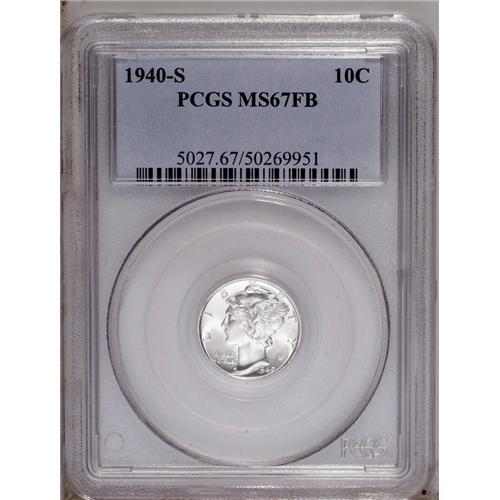 1940-S 10C MS67 Full Bands PCGS. This fully brilliant 1940-S[10C] MS67 Full Bands PCGS.