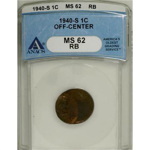 <B>1940-S 1C Lincoln Cent--Off Center--MS62 Red and Brown ANACS.</B></I> <BR><BR><B>Coin Engraver:</B> Victor D. Brenner<BR><BR><b>Shipping:</b> Coins & Currency (<a target="_blank" href="http://www.heritageauctions.com/common/shipping.php">view shipping information</a>)