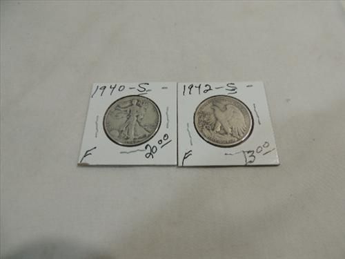 1940-S & 42-S CIRCULATED WALKING LIBERTY HALF DOLLAR. AS SHOWN. VIEW PICTURE FOR DETAIL.