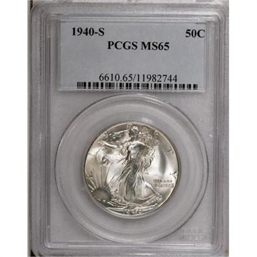 <B>1940-S 50C MS65 PCGS.</B></I> PCGS Population (1171/314). NGC Census: (737/140). Mintage: 4,550,000. Numismedia Wsl. Price for NGC/PCGS coin in MS65: $325. (#6610)<BR><BR><B>Coin Engraver:</B> Adolph A. Weinman<BR><BR><b>Shipping:</b> Coins & Currency (<a target="_blank" href="http://www.heritageauctions.com/common/shipping.php">view shipping information</a>)