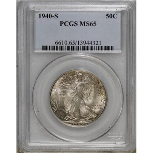 <B>1940-S 50C MS65 PCGS.</B></I> PCGS Population (1173/315). NGC Census: (733/140). Mintage: 4,550,000. Numismedia Wsl. Price for NGC/PCGS coin in MS65: $315. (#6610)<BR><BR><B>Coin Engraver:</B> Adolph A. Weinman<BR><BR><b>Shipping:</b> Coins & Currency (<a target="_blank" href="http://www.heritageauctions.com/common/shipping.php">view shipping information</a>)