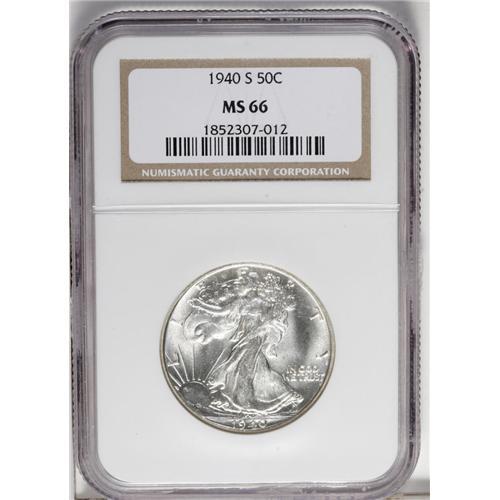 <B>1940-S 50C MS66 NGC.</B></I> Highly lustrous with a touch of haze in the right obverse field. Liberty's thumb is separated. NGC has graded only five coins finer (10/06).<BR><BR><b>Shipping:</b> Coin/Currency (<a target="_blank" href="http://www.heritageauctions.com/common/shipping.php">view shipping information</a>)