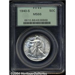 <table><tr><td><TABLE cellSpacing=0 cellPadding=0 width="100%" bgColor=#000000 border=0><TBODY> <TR><TD width="100%"><TABLE cellSpacing=1 cellPadding=3 width="100%" border=0><TBODY><TR><TD width="100%" bgColor=#79735c><FONT face=arial color=#ffffff size=3><B>Description</B> </FONT></TD></TR><TR><TD width="100%" bgColor=#ffffff><FONT face=arial size=2><B>1940-S 50C MS66 PCGS.</B></I> The branch hand and upper skirt lines are not fully struck, but this lustrous and essentially brilliant Gem has a gorgeously preserved reverse and a clean obverse. Encapsulated in a green label PCGS holder. </FONT></TD></TR></TBODY></TABLE></TD></TR></TBODY></TABLE><BR><A name=PricesRealized></A><TABLE cellSpacing=0 cellPadding=0 width="100%" bgColor=#000000 border=0><TBODY><TR><TD width="100%"><TABLE cellSpacing=1 cellPadding=3 width="100%" border=0><TBODY><TR><TD width="100%" bgColor=#79735c><A name=PR><FONT face=arial color=#ffffff size=3><B>Previous Prices from Heritage Auctions</B> </FONT></A></TD></TR><TR><TD bgColor=#f6f6ed><TABLE cellSpacing=0 cellPadding=0 width="100%" border=1><TBODY><TR><TD align=middle width="33%"><B>Date</B></TD><TD align=middle width="33%"><B>Service</B></TD><TD align=middle width="33%"><B>Price</B></TD></TR><TR bgColor=whitesmoke><TD width="33%"><B>07/10/2001</B></TD><TD width="33%">NGC</TD><TD width="33%">$675.00</TD></TR><TR bgColor=whitesmoke><TD width="33%"><B>09/29/1999</B></TD><TD width="33%">NGC</TD><TD width="33%">$575.00</TD></TR><TR bgColor=whitesmoke><TD width="33%"><B>01/07/2004</B></TD><TD width="33%">NGC</TD><TD width="33%">$1,150.00</TD></TR><TR bgColor=whitesmoke><TD width="33%"><B>03/01/2003</B></TD><TD width="33%">PCGS</TD><TD width="33%">$1,150.00</TD></TR><TR bgColor=whitesmoke><TD width="33%"><B>09/28/2002</B></TD><TD width="33%">NGC</TD><TD width="33%">$661.25</TD></TR><TR bgColor=whitesmoke><TD width="33%"><B>02/24/2002</B></TD><TD width="33%">NGC</TD><TD width="33%">$603.75</TD></TR><TR bgColor=whitesmoke><TD width="33%"><B>02/23/2001</B></TD><TD width="33%">NGC</TD><TD width="33%">$862.50</TD></TR><TR bgColor=whitesmoke><TD width="33%"><B>08/07/2000</B></TD><TD width="33%">NGC</TD><TD width="33%">$690.00</TD></TR><TR bgColor=whitesmoke><TD width="33%"><B>06/04/1999</B></TD><TD width="33%">PCGS</TD><TD width="33%">$862.50</TD></TR><TR bgColor=whitesmoke><TD width="33%"><B>03/21/1998</B></TD><TD width="33%">PCGS</TD><TD width="33%">$1,092.50</TD></TR><TR bgColor=whitesmoke><TD width="33%"><B>02/22/1997</B></TD><TD width="33%">PCGS</TD><TD width="33%">$1,155.00</TD></TR><TR bgColor=whitesmoke><TD width="33%"><B>07/31/1993</B></TD><TD width="33%">PCGS</TD><TD width="33%">$874.50</TD></TR><TR bgColor=whitesmoke><TD width="33%"><B>03/21/2002</B></TD><TD width="33%">PCGS</TD><TD width="33%">$1,725.00</TD></TR><TR bgColor=whitesmoke><TD width="33%"><B>03/01/1999</B></TD><TD width="33%">NGC</TD><TD width="33%">$748.00</TD></TR><TR bgColor=whitesmoke><TD width="33%"><B>02/01/2000</B></TD><TD width="33%">PCGS</TD><TD width="33%">$834.00</TD></TR><TR bgColor=whitesmoke><TD width="33%"><B>03/01/1999</B></TD><TD width="33%">PCGS</TD><TD width="33%">$1,150.00</TD></TR></TBODY></TABLE></TD></TR><TR><TD bgColor=#ffffff><FONT face=arial size=1 ?>PLEASE NOTE: All prices realized reflect the final hammer price PLUS the buyer's premium in auctions that charge a buyer's premium. Each item has a notation at the top of the listing indicating whether that lot included a buyer's premium. Example: A item that sells with a final hammer price of $100 and a 20% buyer's premium will display with a price realized of $120. All information listed is intended to be as accurate as possible, but errors are possible. Please use this guide carefully and inform us of any inaccuracies. </FONT></TD></TR></TBODY></TABLE></TD></TR></TBODY></TABLE><BR><TABLE cellSpacing=0 cellPadding=0 width="100%" bgColor=#000000 border=0><TBODY><TR><TD width="100%"><TABLE cellSpacing=1 cellPadding=3 width="100%" border=0><TBODY><TR><TD width="100%" bgColor=#79735c colSpan=6><FONT face=arial color=#ffffff size=3><B>Price Guide*</B> </FONT></TD></TR><TR bgColor=#f6f6ed><TD align=middle><B>Grade</B> </TD><TD align=middle><B>Coin World<BR>(Trends)</B> </TD><TD align=middle><B>Numismedia<BR>Retail</B> </TD><TD align=middle><B>Numismedia<BR>Wholesale</B> </TD><TD align=middle><B>Coin<BR>Universe</B> </TD><TD align=middle><B>Heritage<BR>Value Index</B> </TD></TR><TR bgColor=#ffffff><TD align=middle>65</TD><TD align=right>$500.00</TD><TD align=right>$425.00</TD><TD align=right>$340.00</TD><TD align=right>$500.00</TD><TD align=right>$334.75</TD></TR><TR style="FONT-WEIGHT: bold" bgColor=#cccfdd><TD align=middle>66</TD><TD align=right>$1,500.00</TD><TD align=right>---</TD><TD align=right>$1,000.00</TD><TD align=right>$1,600.00</TD><TD align=right>$1,056.67</TD></TR><TR bgColor=#ffffff><TD align=middle>67</TD><TD align=right>---</TD><TD align=right>---</TD><TD align=right>$3,350.00</TD><TD align=right>$20,000.00</TD><TD align=right>$14,000.00</TD></TR><TR bgColor=#ffffff><TD colSpan=6><FONT size=1>*All information listed is intended to be as accurate as possible, but errors are possible. No item may be returned or refused based on this information which is provided as a service to our customers. You should contact each pricing source directly to determine the accuracy of this information. </FONT></TD></TR></TBODY></TABLE></TD></TR></TBODY></TABLE><BR><TABLE cellSpacing=0 cellPadding=0 width="100%" bgColor=#000000 border=0><TBODY><TR><TD width="100%"><TABLE cellSpacing=1 cellPadding=3 width="100%" border=0><TBODY><TR><TD width="100%" bgColor=#79735c><FONT face=arial color=#ffffff size=3><B>Population Guide</B> </FONT></TD></TR><TR bgColor=#ffffff><TD align=middle><!-- Begin Output of Population Grid--><TABLE cellSpacing=0 cellPadding=0 width="100%" border=0><TBODY><TR><TD vAlign=center><TABLE cellSpacing=0 width="100%" border=1 cellsadding="3"><TBODY><TR><TD vAlign=center><TABLE cellSpacing=0 cellPadding=3 width="100%" bord