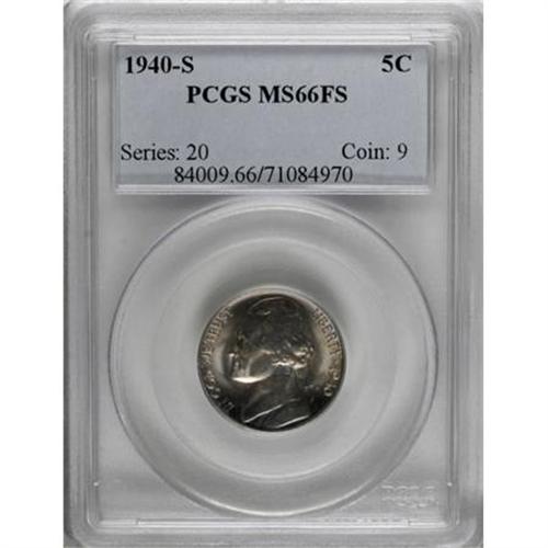 <B>1940-S 5C MS66 Full Steps PCGS.</B></I> PCGS Population (117/8). NGC Census: (13/2). (#84009)<BR><BR><b>Shipping:</b> Coins & Currency (<a target="_blank" href="http://www.heritageauctions.com/common/shipping.php">view shipping information</a>)