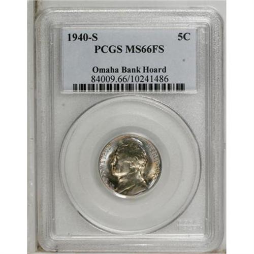 <B>1940-S 5C MS66 Full Steps PCGS.</B></I> Ex: Omaha Bank Hoard. PCGS Population (114/8). NGC Census: (13/2). (#84009)<BR><BR><b>Shipping:</b> Coins & Currency (<a target="_blank" href="http://www.heritageauctions.com/common/shipping.php">view shipping information</a>)