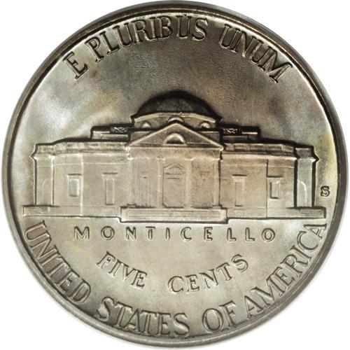 <B>1940-S 5C MS67 Full Steps PCGS.</B></I> Subtle gold, lilac, powder-blue, and violet patina rests on lustrous surfaces, and a powerful strike emboldens the design elements, culminating in Full Steps. Both sides are well preserved. PCGS has seen about 40 Full Step 1940-S nickels, eight of which are in this lofty grade, and none finer (4/04).<BR><BR><b>Shipping:</b> Coins & Currency (<a target="_blank" href="http://www.heritageauctions.com/common/shipping.php">view shipping information</a>)