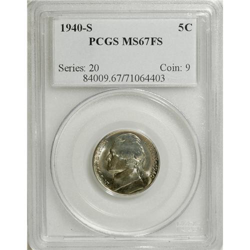 1940-S 5C MS67 Full Steps PCGS. Subtle gold, lilac, p