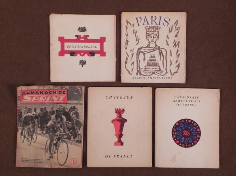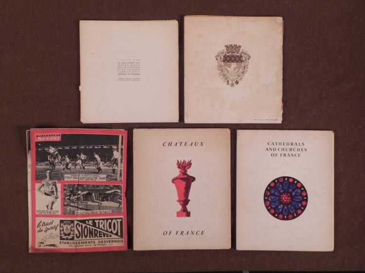 1940'S FRENCH BOOKLETS-CHATEAUX OF FRANCE-CATHEDRALS-FONTAINBLEAU-45 SPORTS PAPER * INTERESTING LOT INCLUDES PARIS 2000TH ANNIVERSARY PHOTO & TEXT BOOK