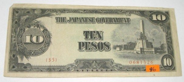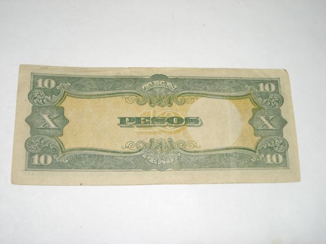 1940'S JAPANESE OCCUPATIONAL 10 TEN PESOS BILL SERIAL # 0681326 *PLEASE LOOK AT PICTURE TO DETERMINE GRADE*!! ***Coin, Currency & All Items Listed in this auction - Grades, Conditions and Values are not Safe Deposit Coins LLC Responsibilty. Grades, Condition and Values are determined by Consigner(s) & Buyers ONLY