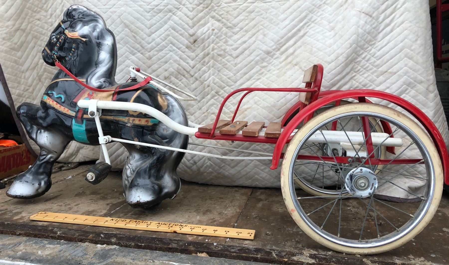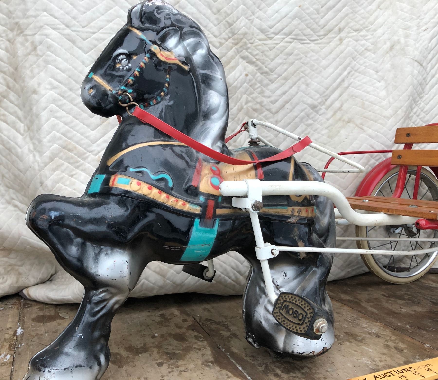 1940'S MOBO PRESSED TIN RIDING HORSE AND SULKY