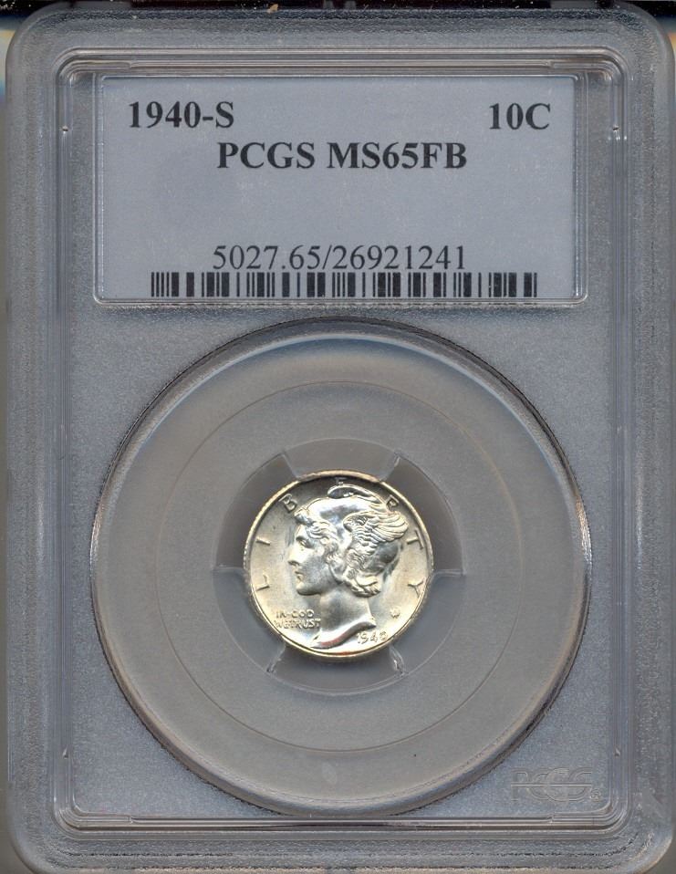 One 1940-S Mercury Dime Coin PCGS MS65FB.