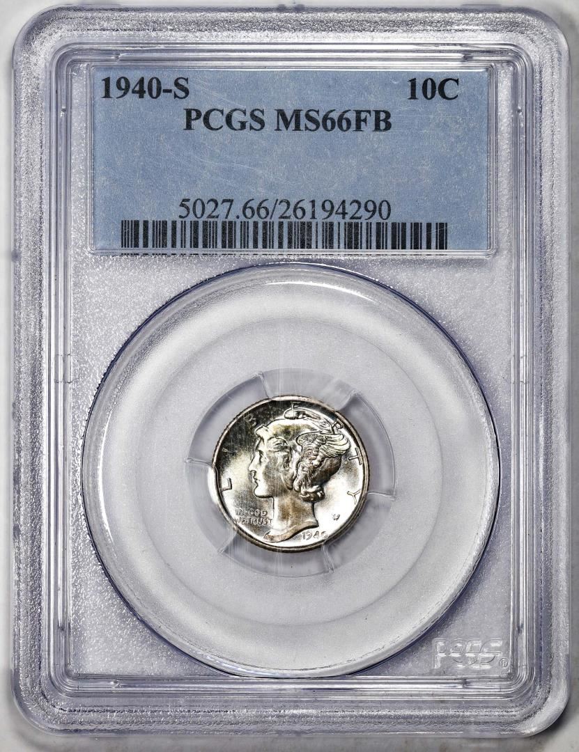 One 1940-S Mercury Dime Coin PCGS MS66FB. PCGS Graded.