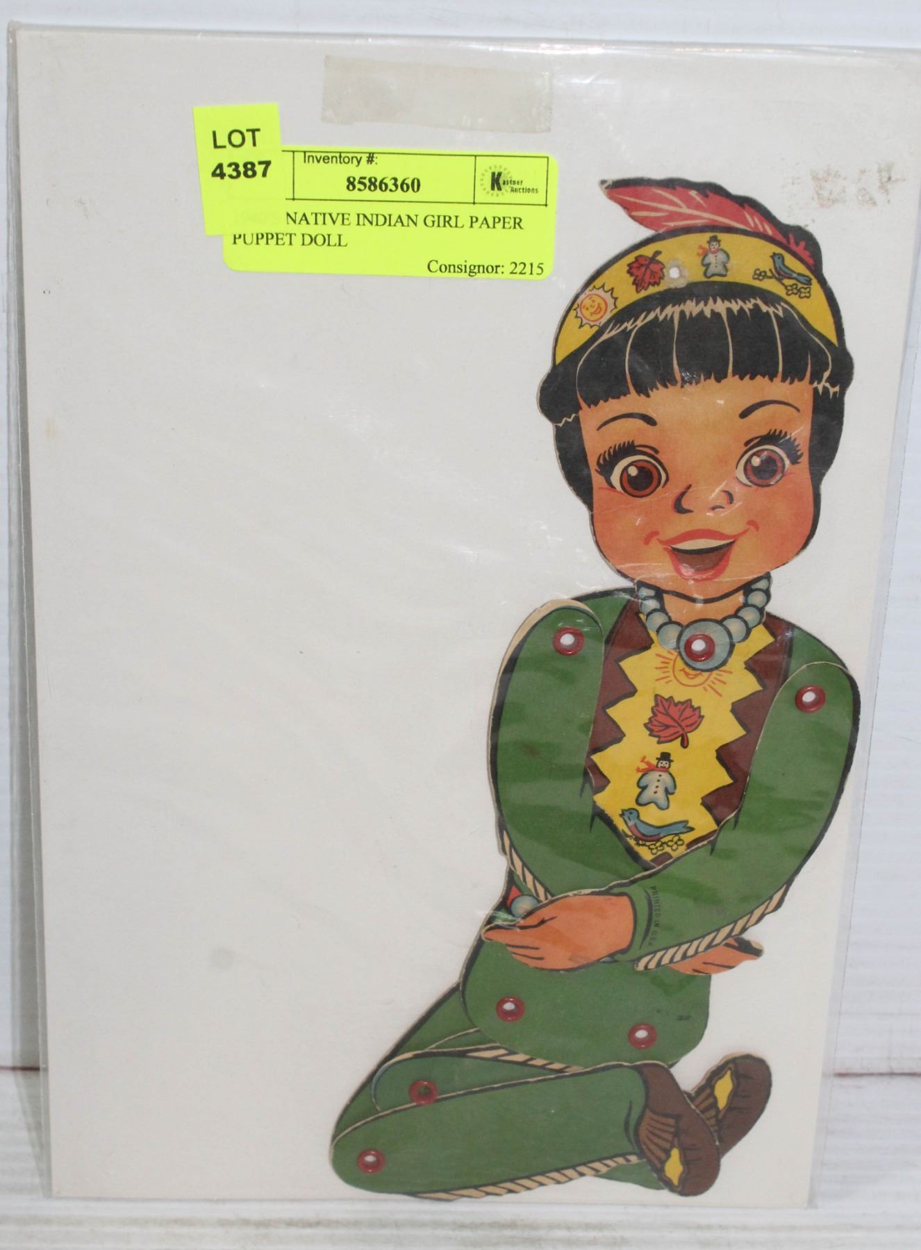 1940'S NATIVE INDIAN GIRL PAPER PUPPET DOLL