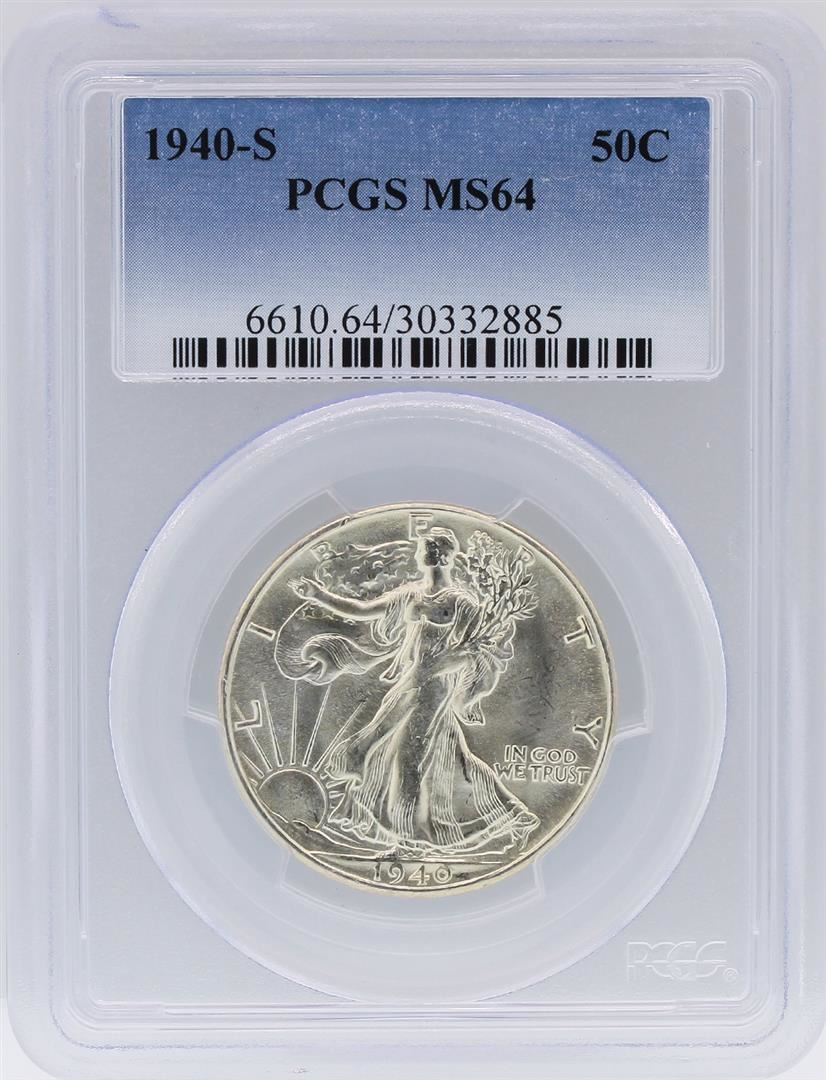 One 1940-S PCGS MS64 Liberty Walking Half Dollar Coin. PCGS Certified.