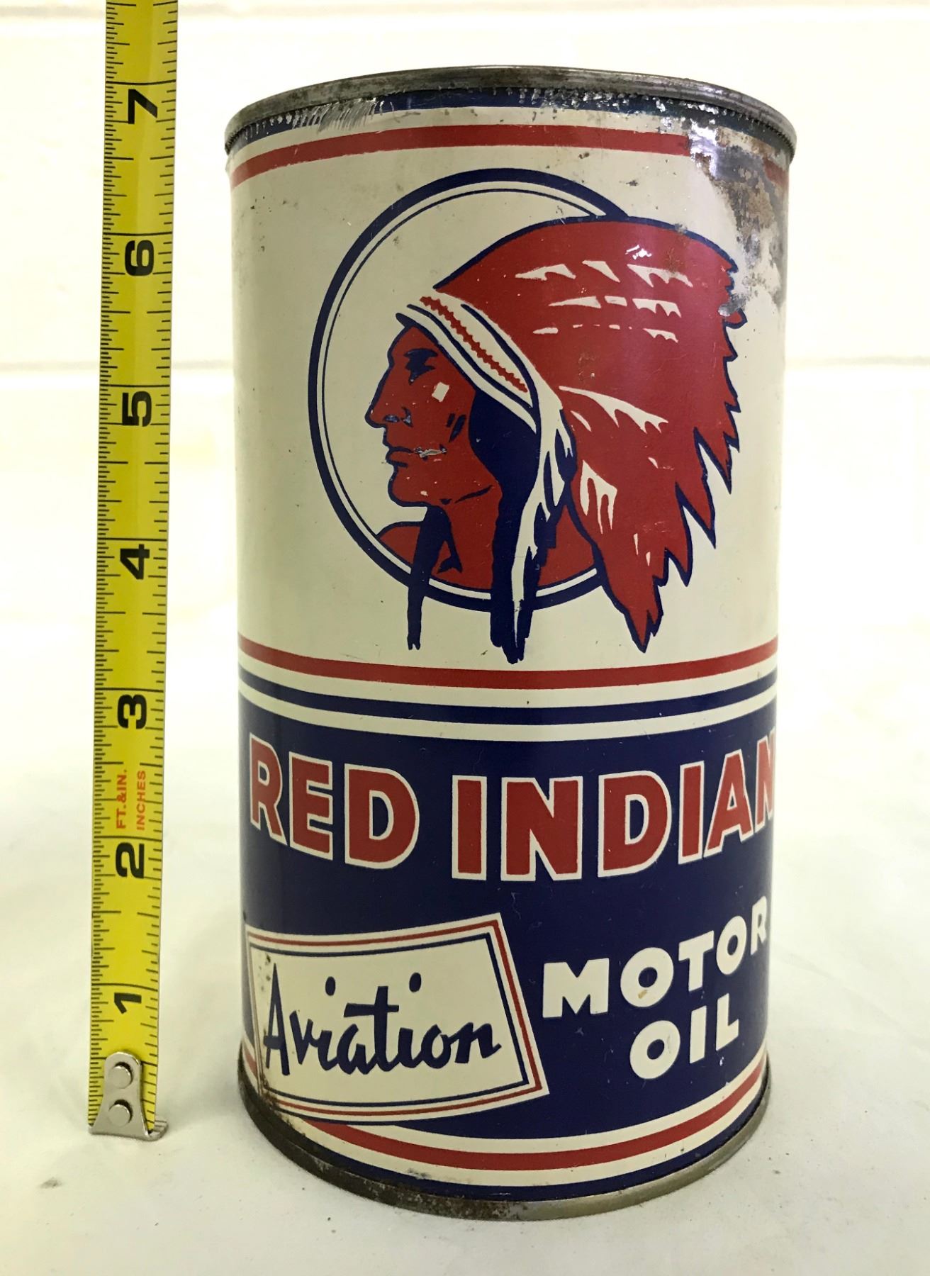 1940'S RED INDIAN 1 QT AVIATION OIL CAN