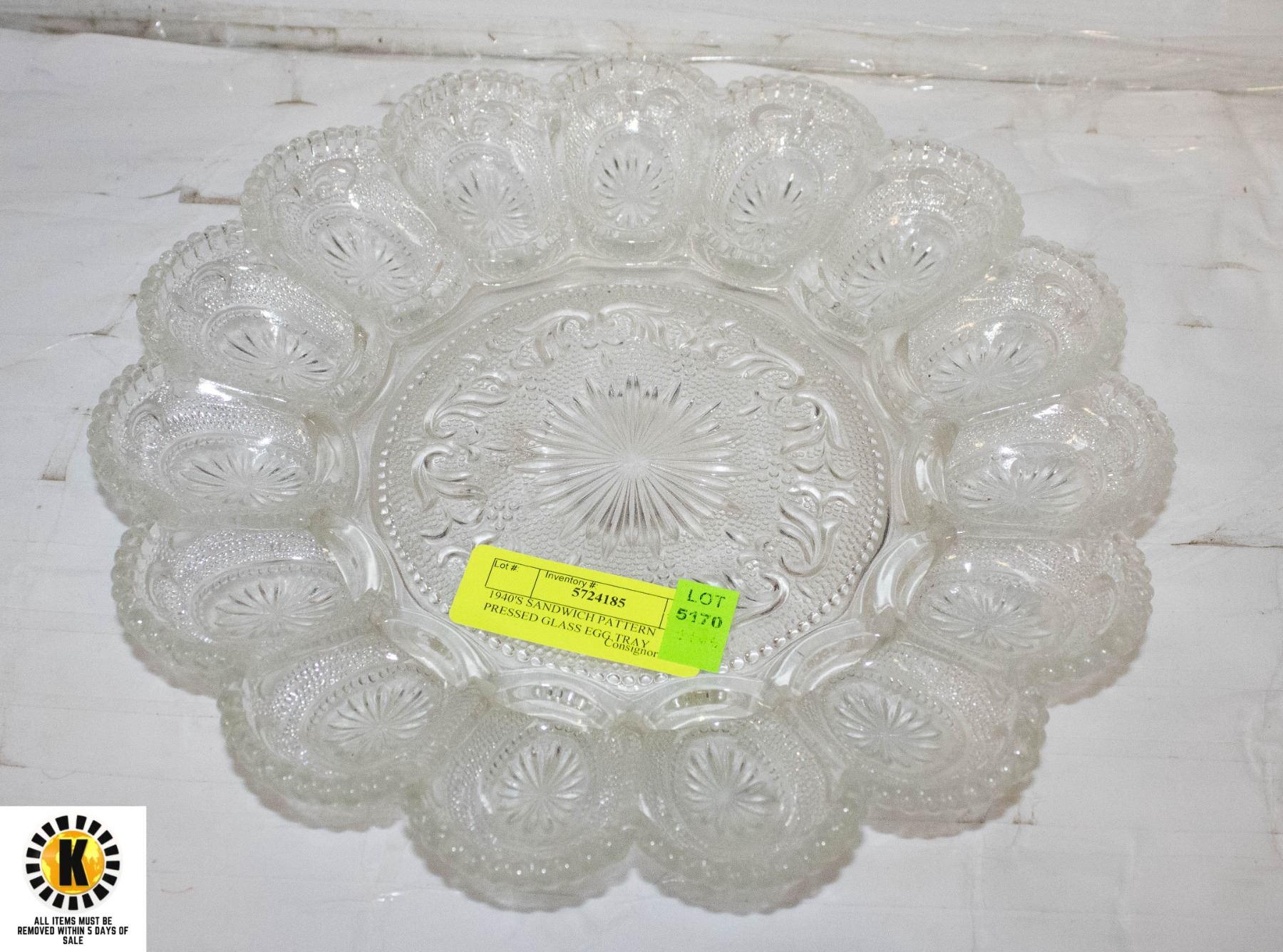 1940'S SANDWICH PATTERN PRESSED GLASS EGG TRAY