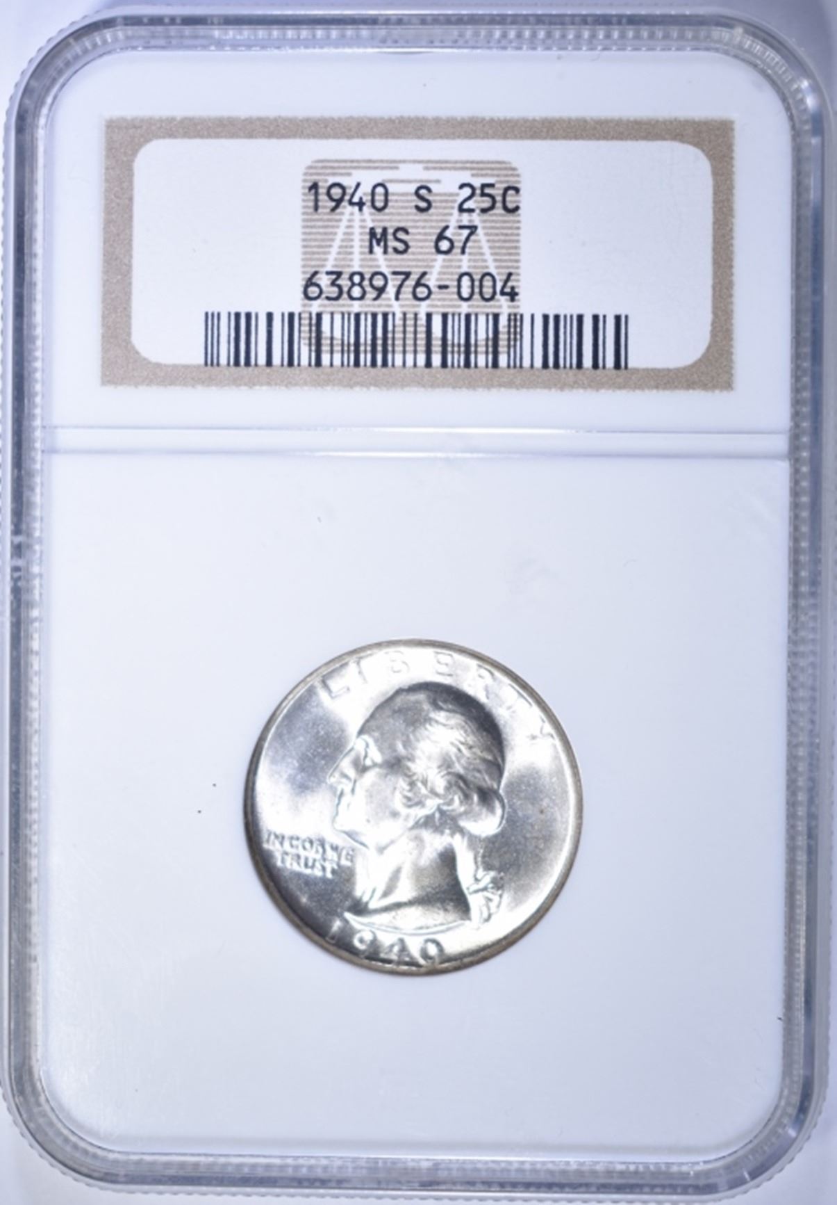 1940-S WASHINGTON QUARTER, NGC MS-67 BLAST WHITE