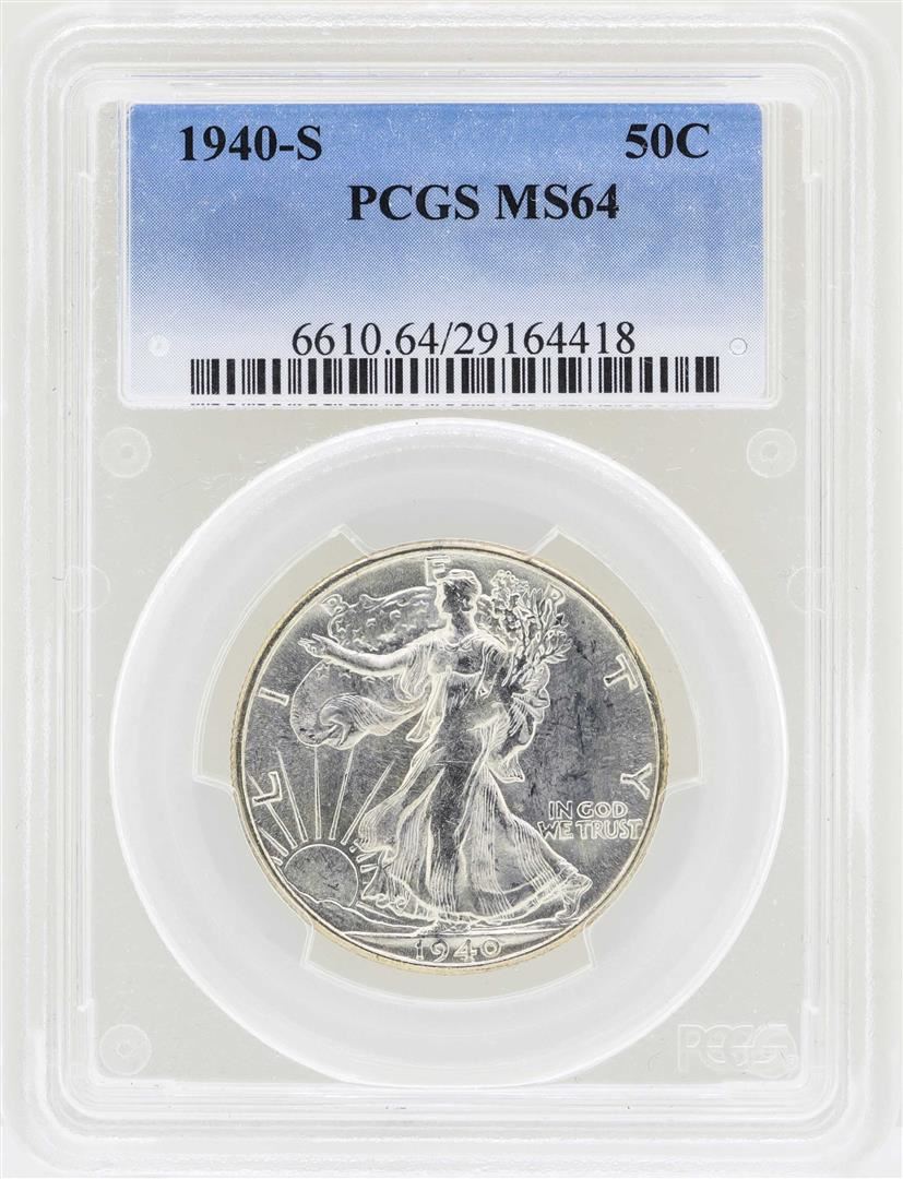One 1940-S Walking Liberty Half Dollar Coin PCGS MS64. PCGS Graded.