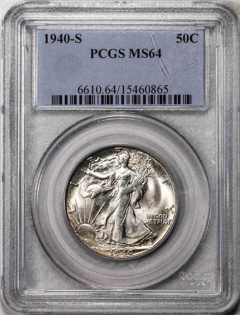One 1940-S Walking Liberty Half Dollar Coin PCGS MS64. PCGS Graded.