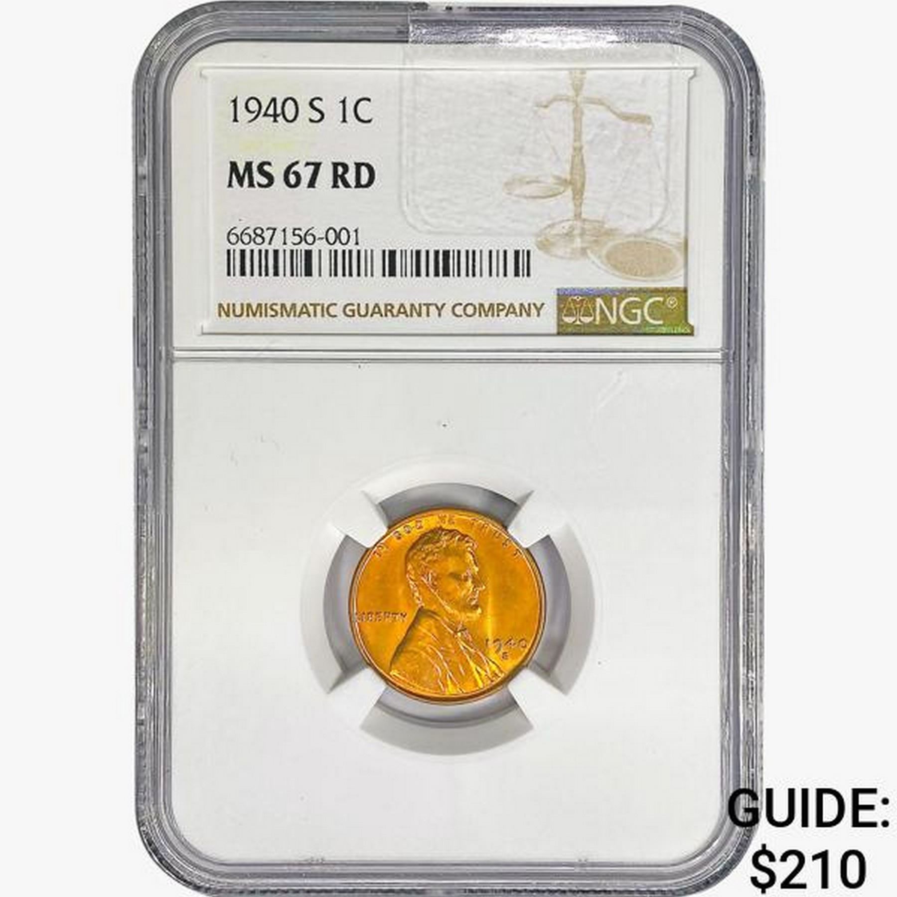 1940-S Wheat Cent NGC MS67 RD