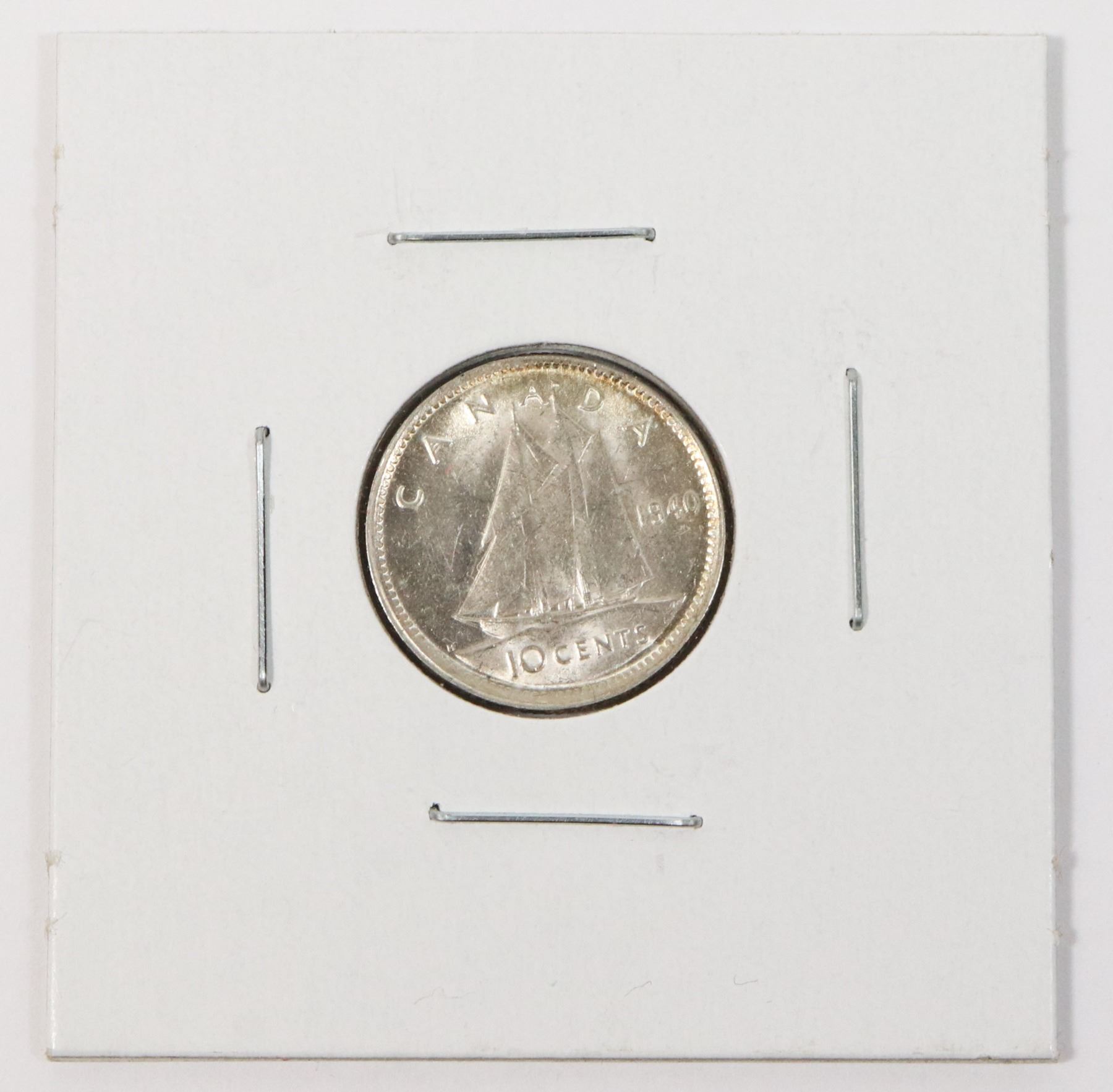 1940 SILVER CANADA 10 CENTS COIN, BU