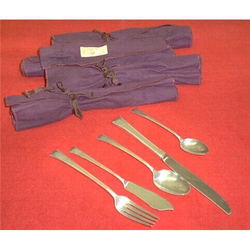 Sterling has character, it lends a feeling of solidity and elegance to any table and a sense of luxury to the owner. There is really nothing like it and never will be again. This sterling flatware set was made in the 1940s by International Silver Co. It is the Serenity Pattern. There are six dinner forks, six dinner knives, six teaspoons, six tablespoons and a butter knife. They have a monogramed B and show some wear in the way of pinhead size dents. In an old 1980s sterling flatware book the individual prices for these pieces comes to $900.00. I don't mind a monogram at all but in case you don't know it, it can be polished out.