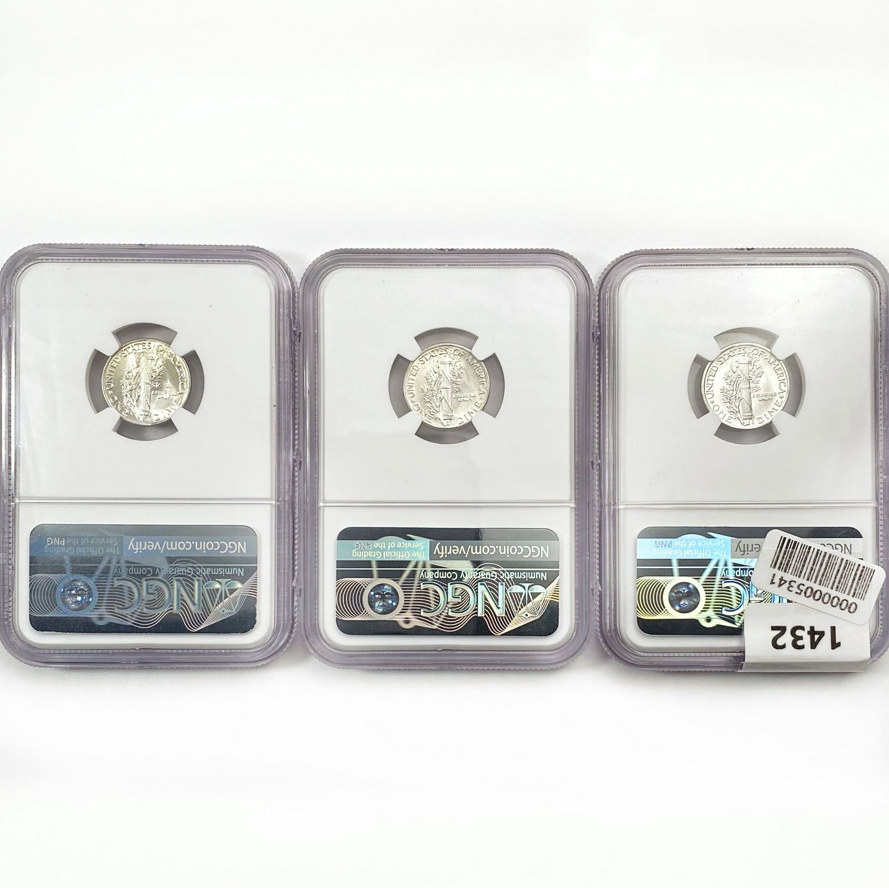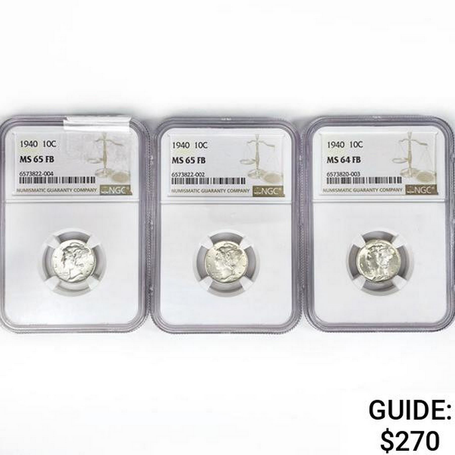 1940 Set [3] Mercury Silver Dime NGC MS FB