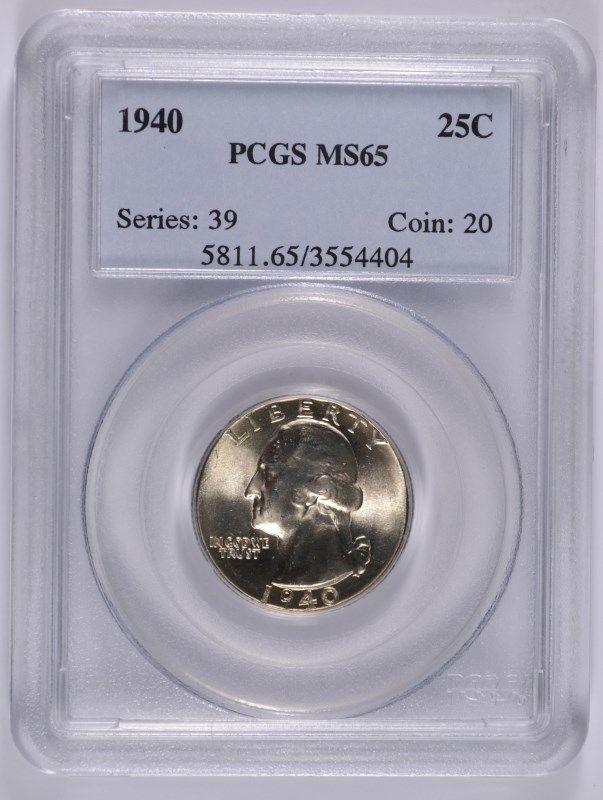 1940 WASHINGTON QUARTER, PCGS MS-65 BLAST WHITE!