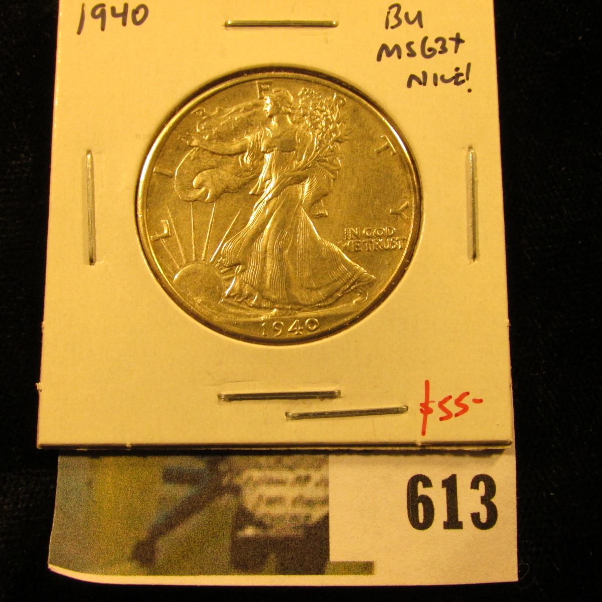 1940 Walking Liberty Half Dollar, BU MS63+, NICE, value $55