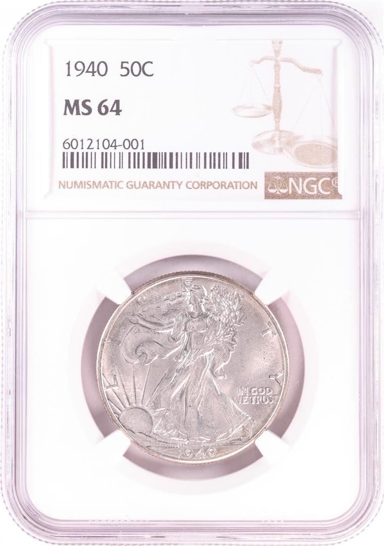 One 1940 Walking Liberty Half Dollar Coin NGC MS64. NGC Certified.