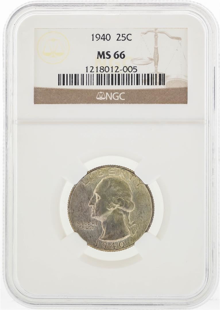 One 1940 Washington Silver Quarter Coin NGC MS66. NGC Certified.