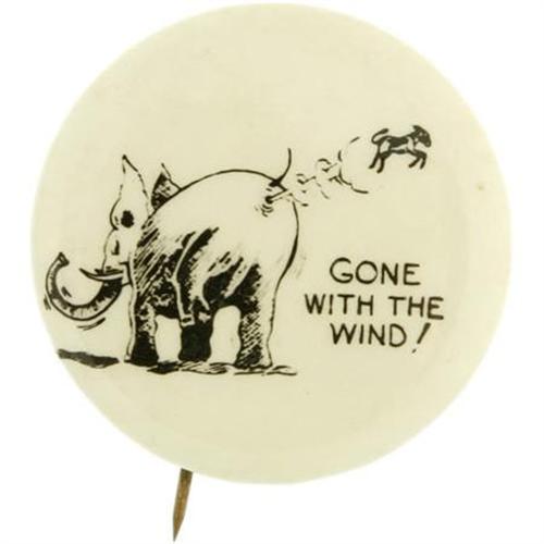 <B>1940 Wendell Willkie Anti-FDR “Gone With The Wind” Campaign Button”,</B></I> 1 3/4”. Fine. <BR><BR><b>Shipping:</b> Miscellaneous Collectibles, Smal (<a target="_blank" href="http://www.heritageauctions.com/common/shipping.php">view shipping information</a>)