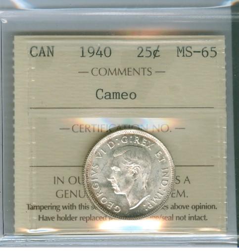 1940 and 1967. Lot of 2 ICCS graded 25¢ coins. Both ICCS MS-65 CAMEO