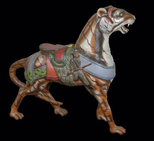 1940 carousel tiger figure, solid wood construction, 36 inches x 36 inches, repaint.