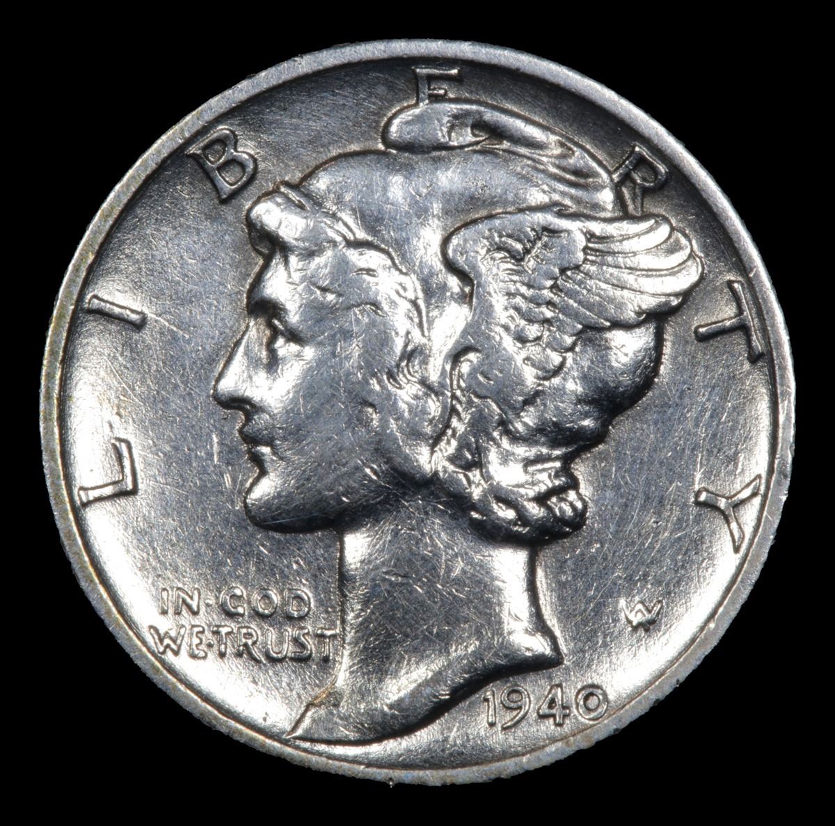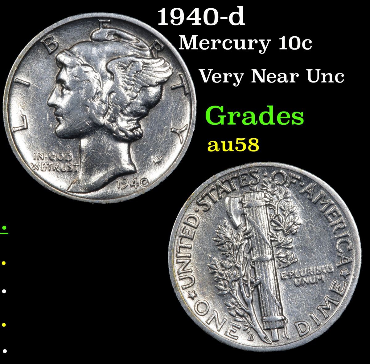 1940-d . Very Near Unc Mercury Dime 10c Grades Choice AU/BU Slider.