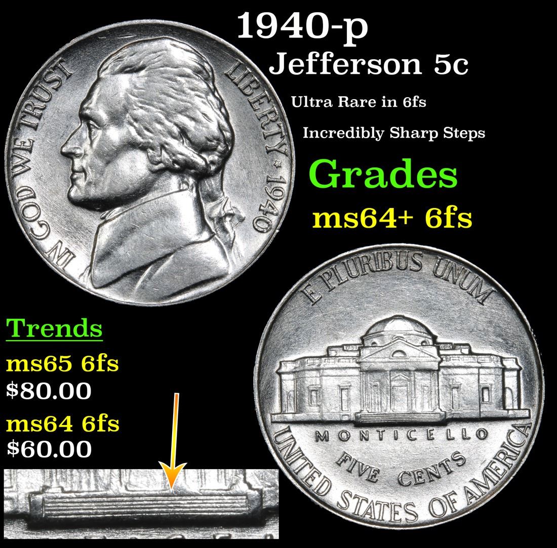 1940-p Ultra Rare in 6fs Incredibly Sharp Steps Jefferson Nickel 5c Grades Choice Unc+ 6fs.