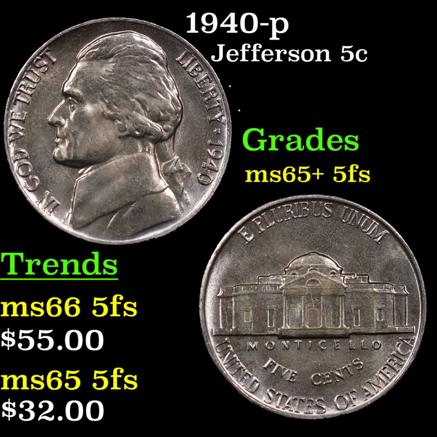 1940-p Jefferson Nickel 5c Grades GEM+ 5fs.