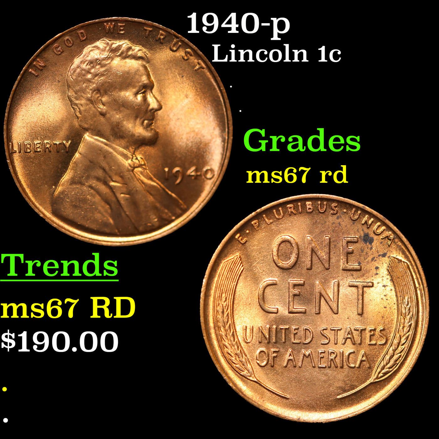 1940-p Lincoln Cent 1c Grades GEM++ Unc RD.