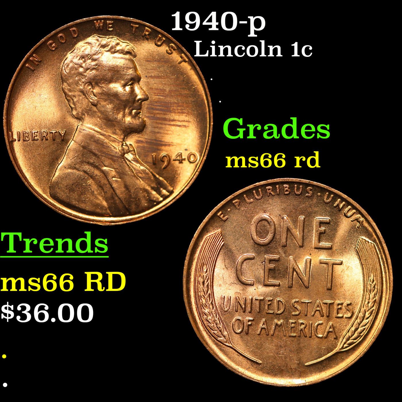 1940-p Lincoln Cent 1c Grades GEM+ Unc RD.