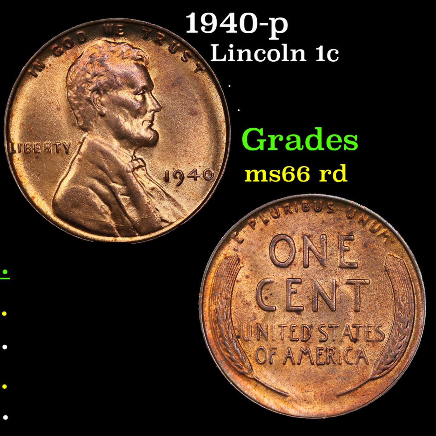 1940-p Lincoln Cent 1c Grades GEM+ Unc RD.