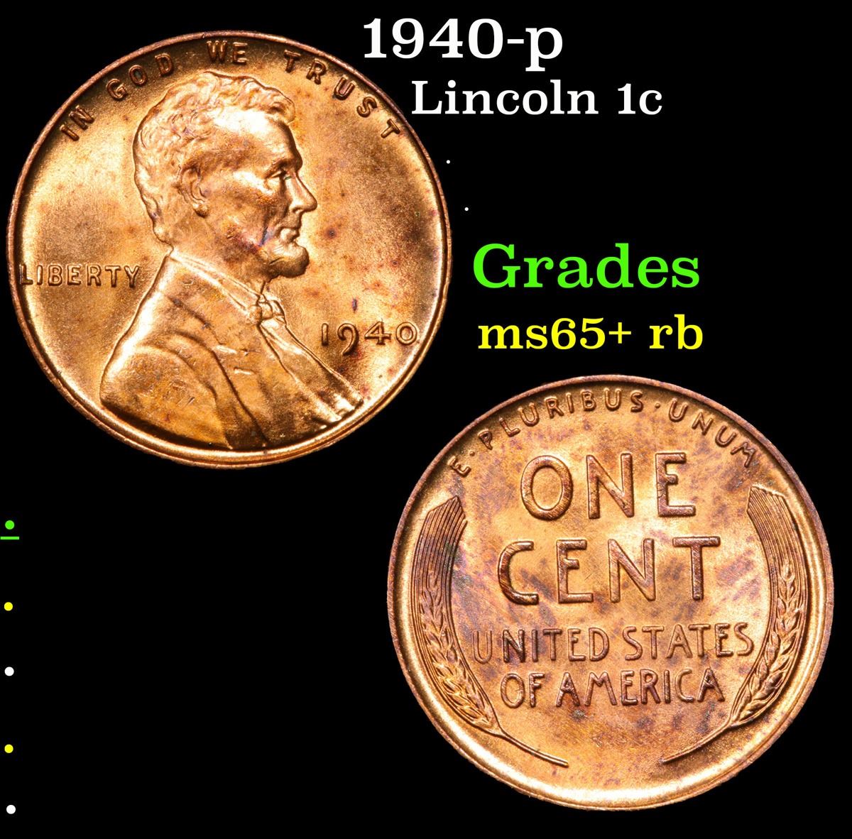 1940-p . . Lincoln Cent 1c Grades Gem+ Unc RB.