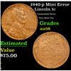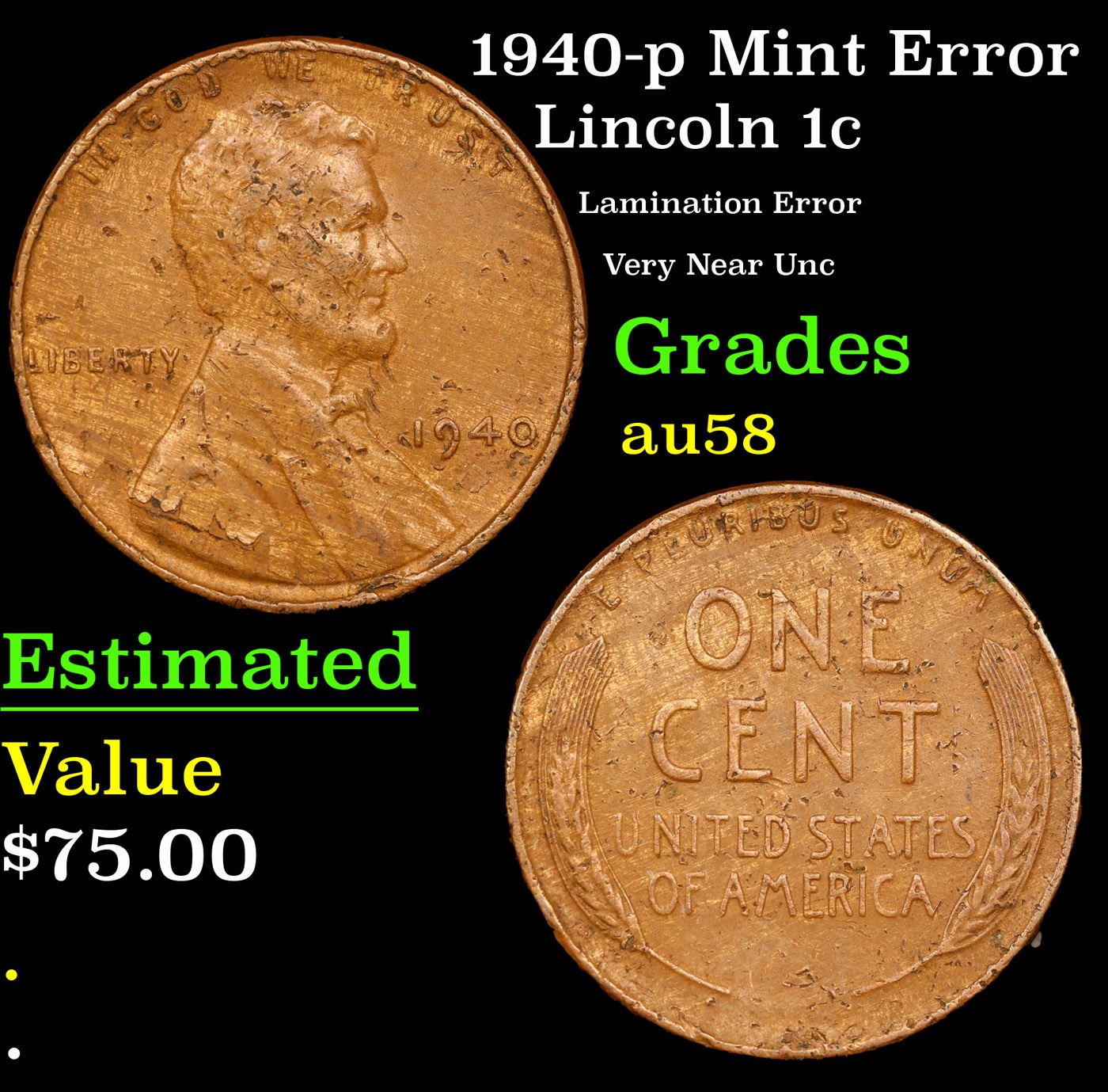 1940-p Mint Error Lincoln Cent 1c Grades Choice AU/BU Slider.