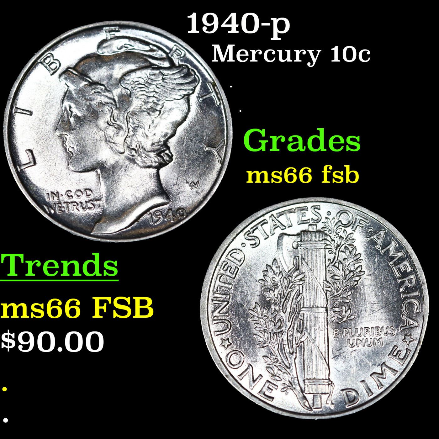 1940-p Mercury Dime 10c Grades GEM+ FSB.