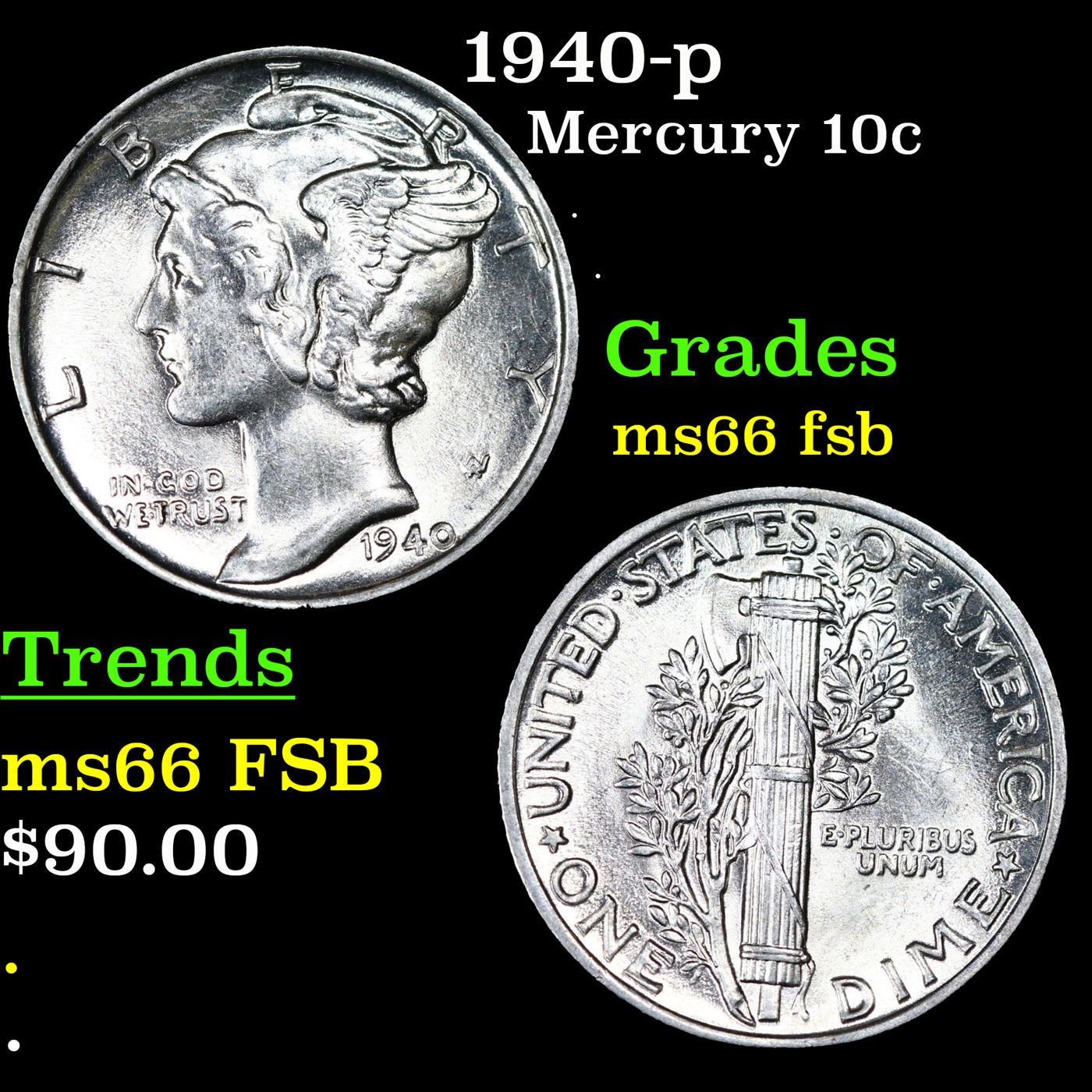 1940-p Mercury Dime 10c Grades GEM+ FSB.