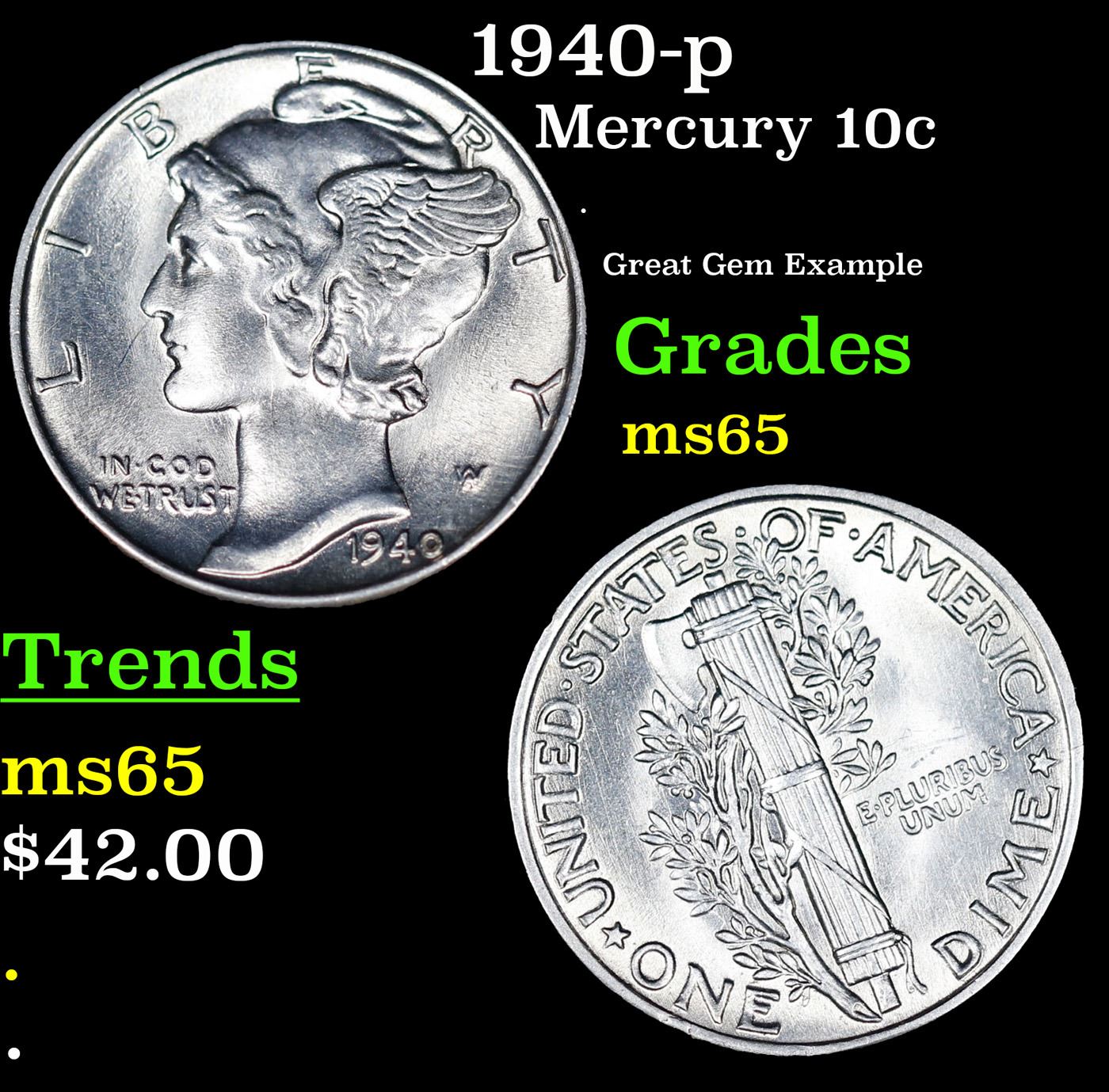 1940-p Mercury Dime 10c Grades GEM Unc.
