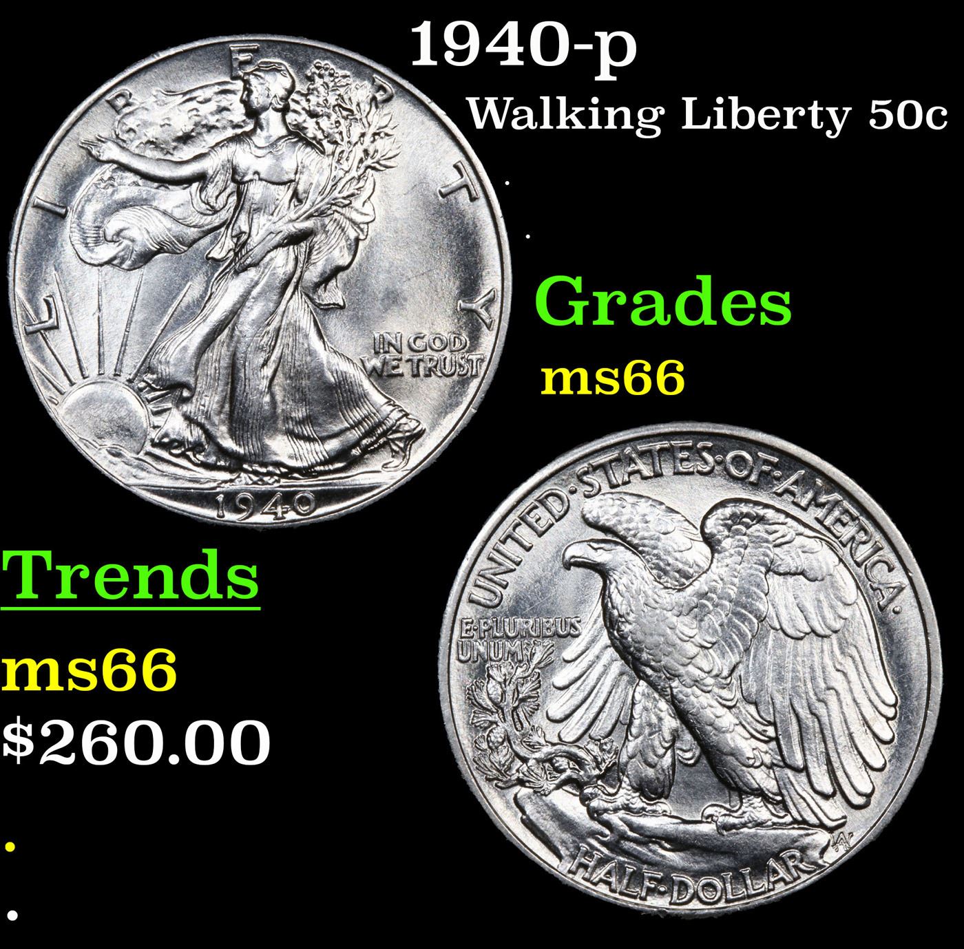 1940-p Walking Liberty Half Dollar 50c Grades GEM+ Unc.